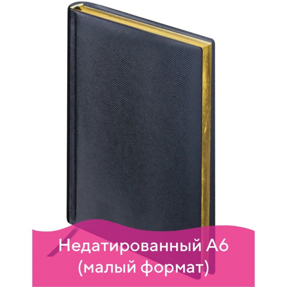 Brauberg Ежедневник недатированный малый формат (100х150 мм) А6, Brauberg "Iguana", под кожу рептилий, 160 л., золотой срез, черный