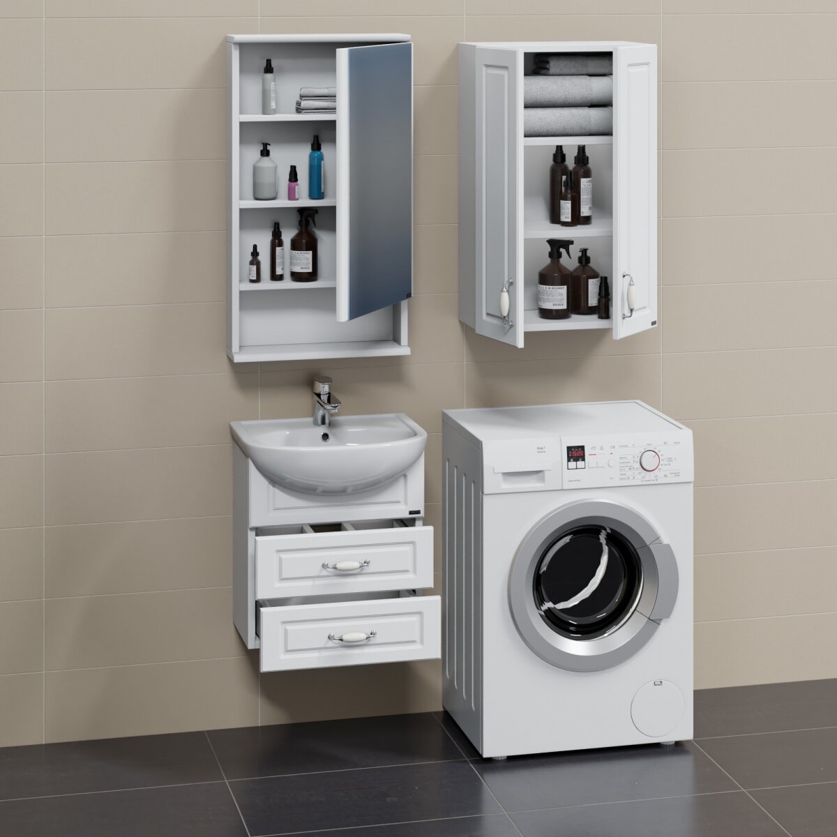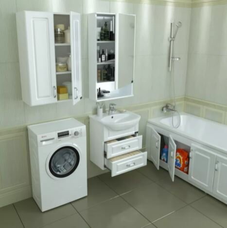 Тумба под раковину в ванную Flamenco, Фламенко 504, белая, 47 х 28.2 x 81 см мебель для ванной