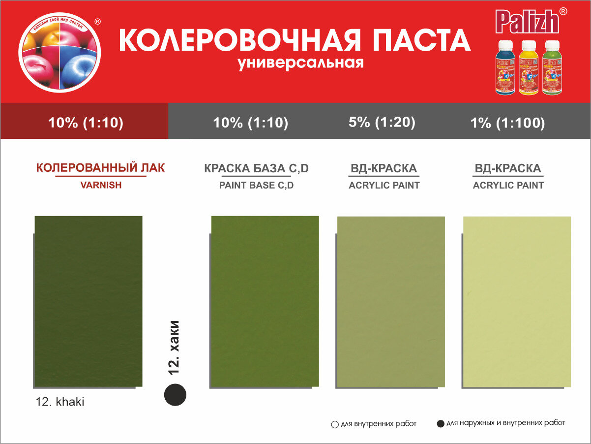 Купить Паста колер универ. "Palizh STANDART" 0,1л № №12 хаки
