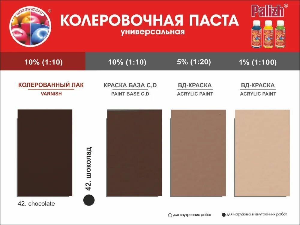 Ниже Вы можете прочитать отзывы на Паста колеровочная универсальная PALIZH, колер для краски, эмали, лака, шоколад 100 мл, ознакомится с подробными характеристиками, посмотреть интересные обзоры и фотографии на Паста колеровочная универсальная PALIZH, колер для краски, эмали, лака, шоколад 100 мл.