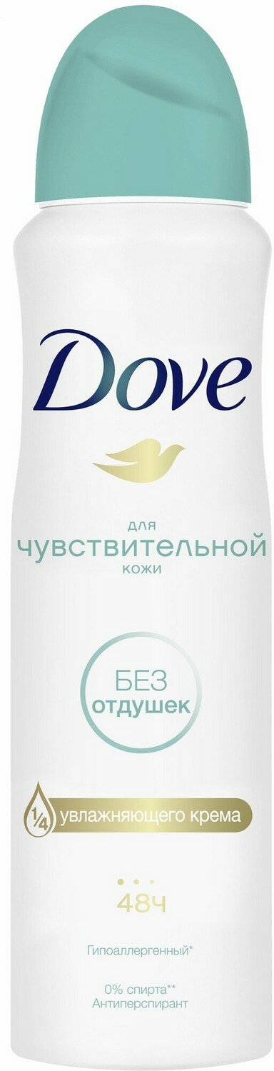 СохранитьDove Дезодорант-антиперспирант спрей женский Бережная забота 48 часов защиты, гипоаллергенный, без отдушек 150 мл - 1 шт интересное: