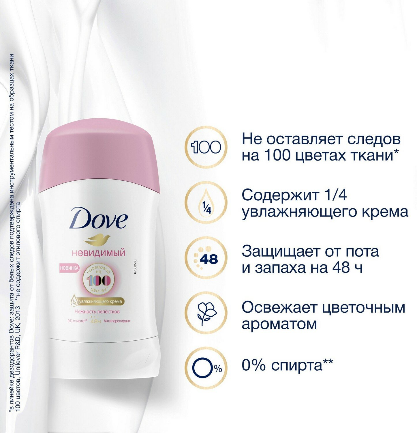 Купить Dove Дезодорант-антиперспирант стик женский Невидимый Нежность лепестков 40 мл - 6 шт