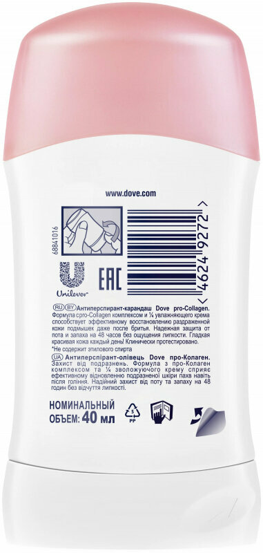 Дезодорант-антиперспирант стик Dove, Pro-Collagen, 40 мл