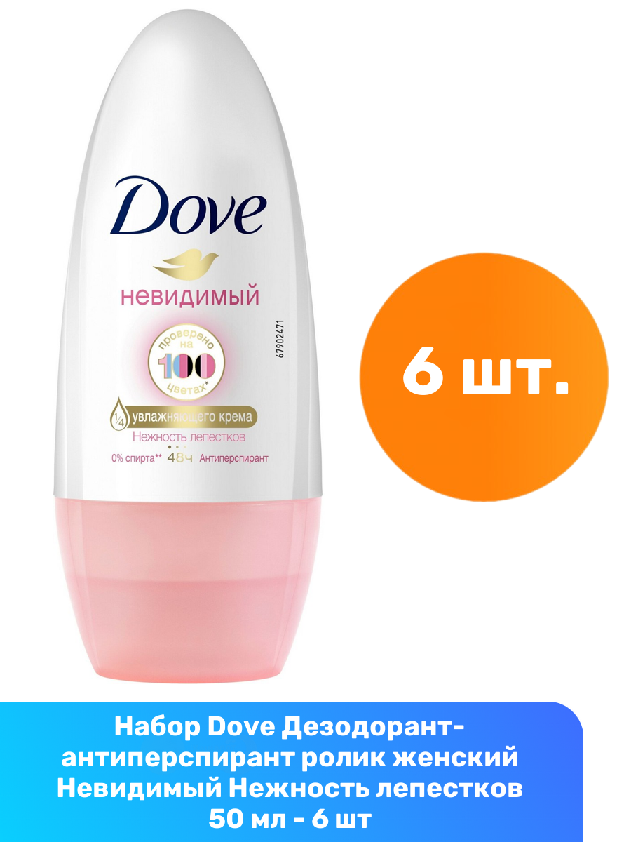 Купить Dove Антиперспирант-дезодорант роликовый Невидимый "Нежность лепестков", 50 мл, 6 шт