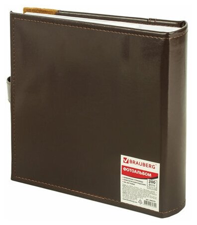 Фотоальбом BRAUBERG на 200 фото 10х15 см, под гладкую кожу, бумажные страницы, застежка, темно-коричневый, 390479 - 1 шт.