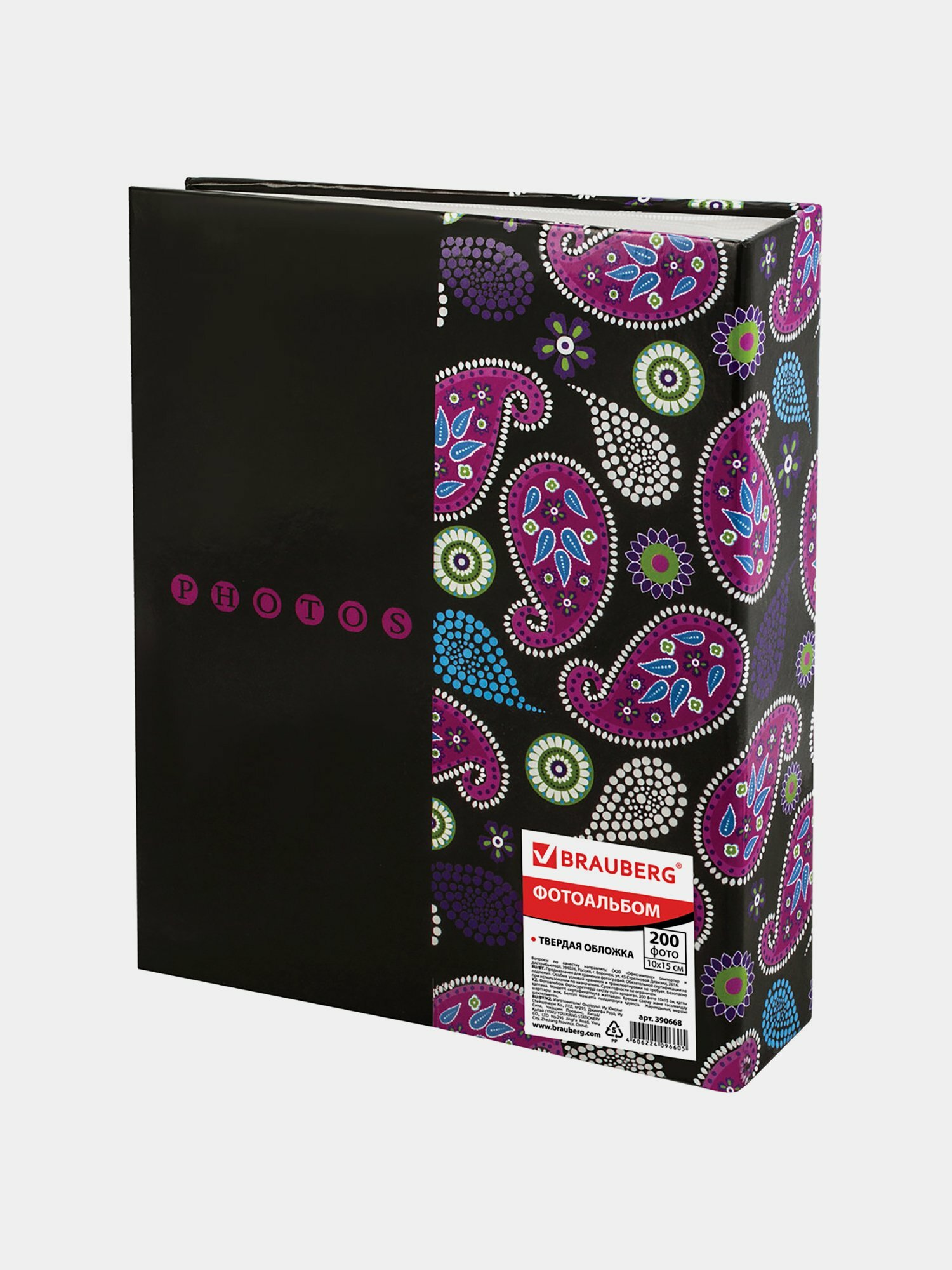 Фотоальбом BRAUBERG на 200 фотографий 10х15 см, твердая обложка, "Пейсли", черный с розовым, 390668 (арт. 390668)