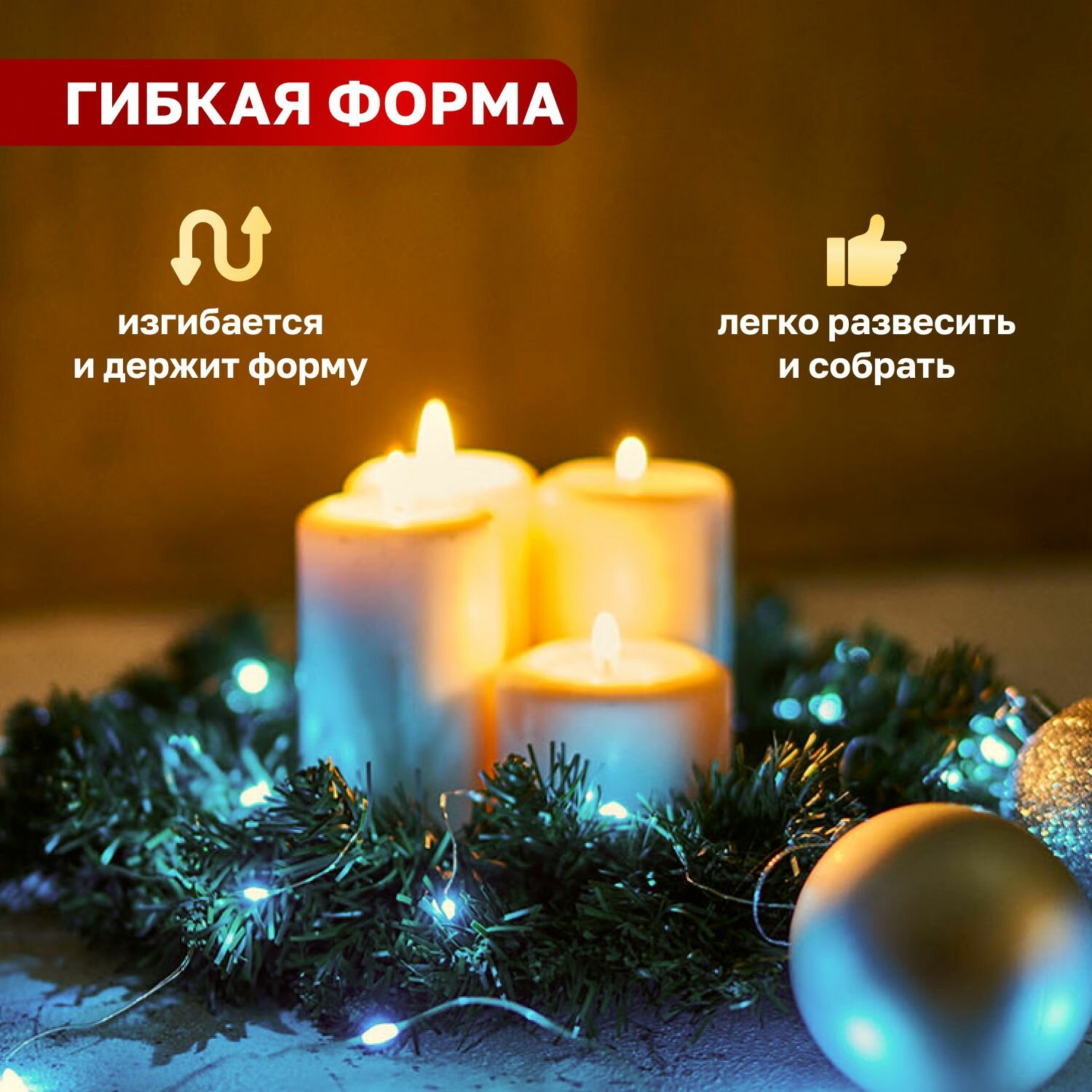 Светодиодная гирлянда Роса Neon-Night 2 м, голубое свечение/ новогодние товары гирлянды / новогодняя распродажа / новогодние скидки / новогодние подарки