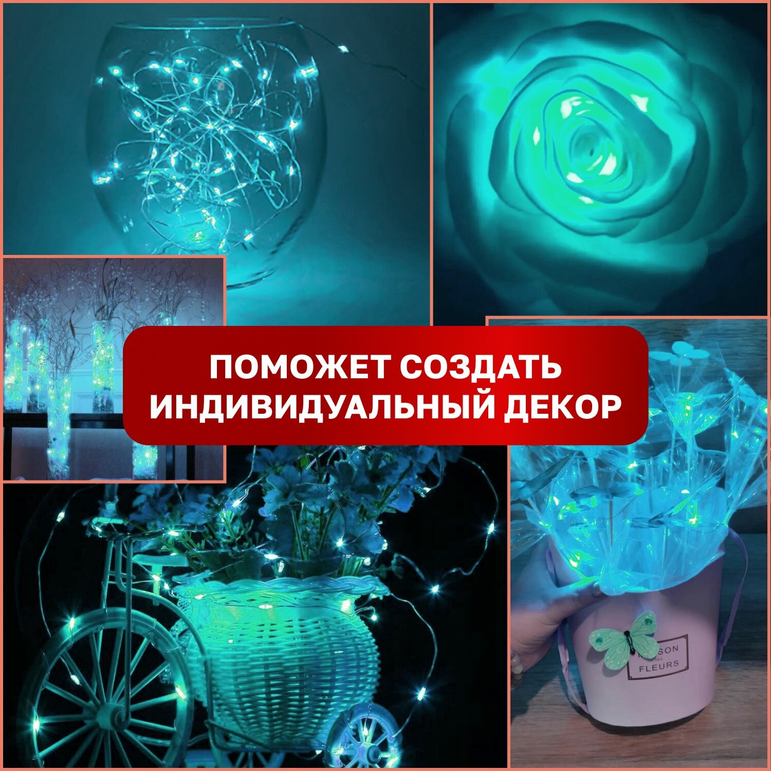 Купить Гирлянда Роса, 2 м, 20 диодов, цвет бирюзовый, тонкий батарейный блок