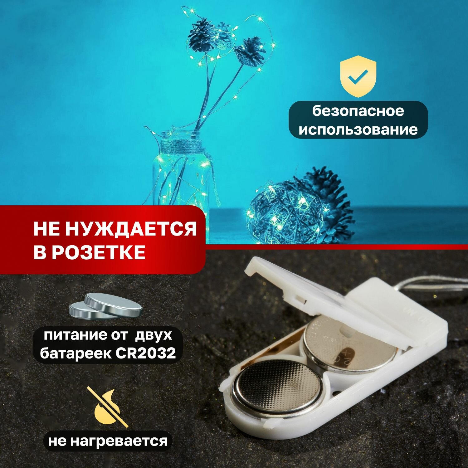 Гирлянда светодиодная Роса 2м, 20LED, бирюзовый, IP20, тонкий батарейный блок, 2хCR2032 в комплекте NEON-NIGHT