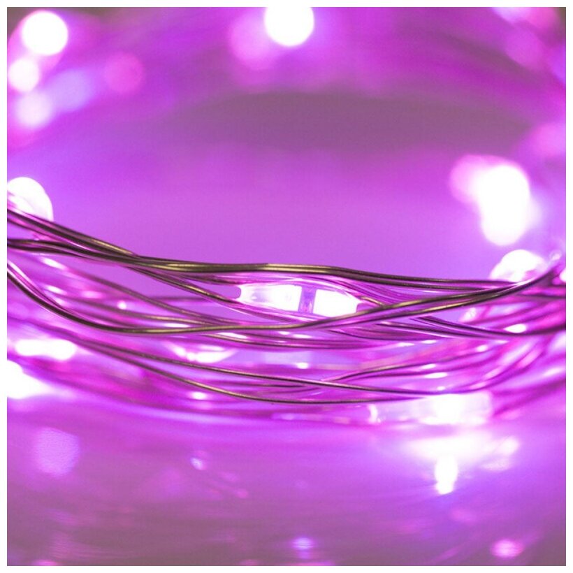Купить Гирлянда Роса, 2 м, 20 диодов, цвет розовый, тонкий батарейный блок