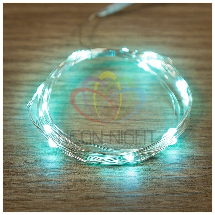 Гирлянда светодиодная Роса 2м, 20LED, бирюзовый, IP20, тонкий батарейный блок, 2хCR2032 в комплекте NEON-NIGHT