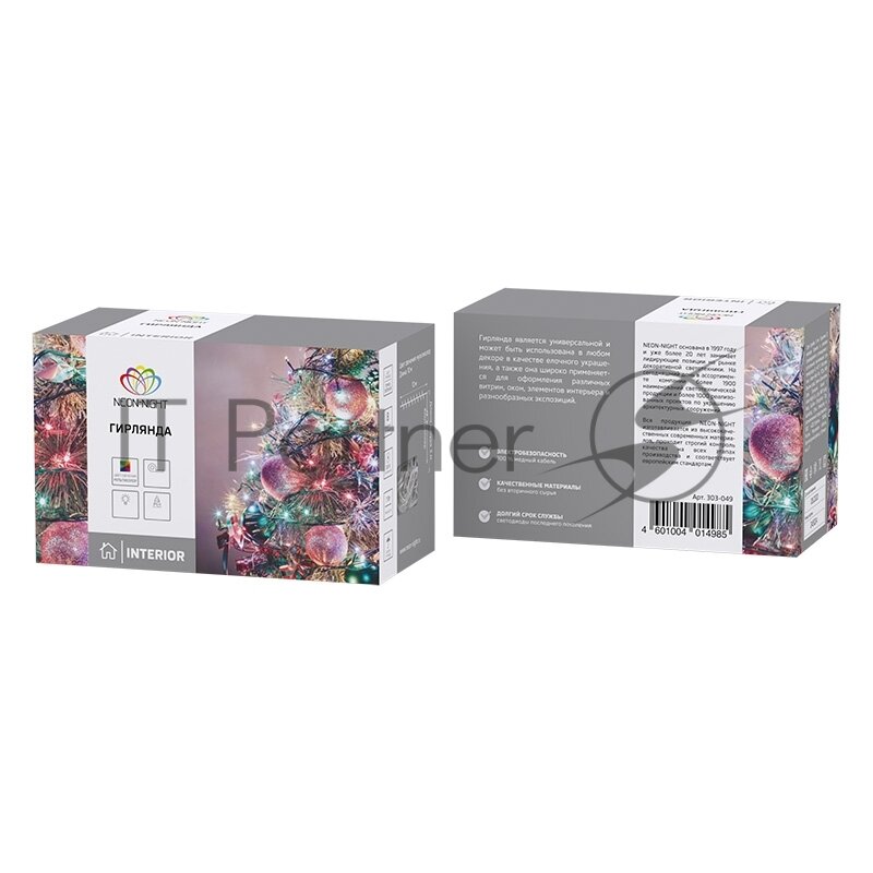 Гирлянда Твинкл-Лайт 20 м, темно-зеленый ПВХ, 160 LED, цвет мультиколор NEON-NIGHT 1 шт арт. 303-119