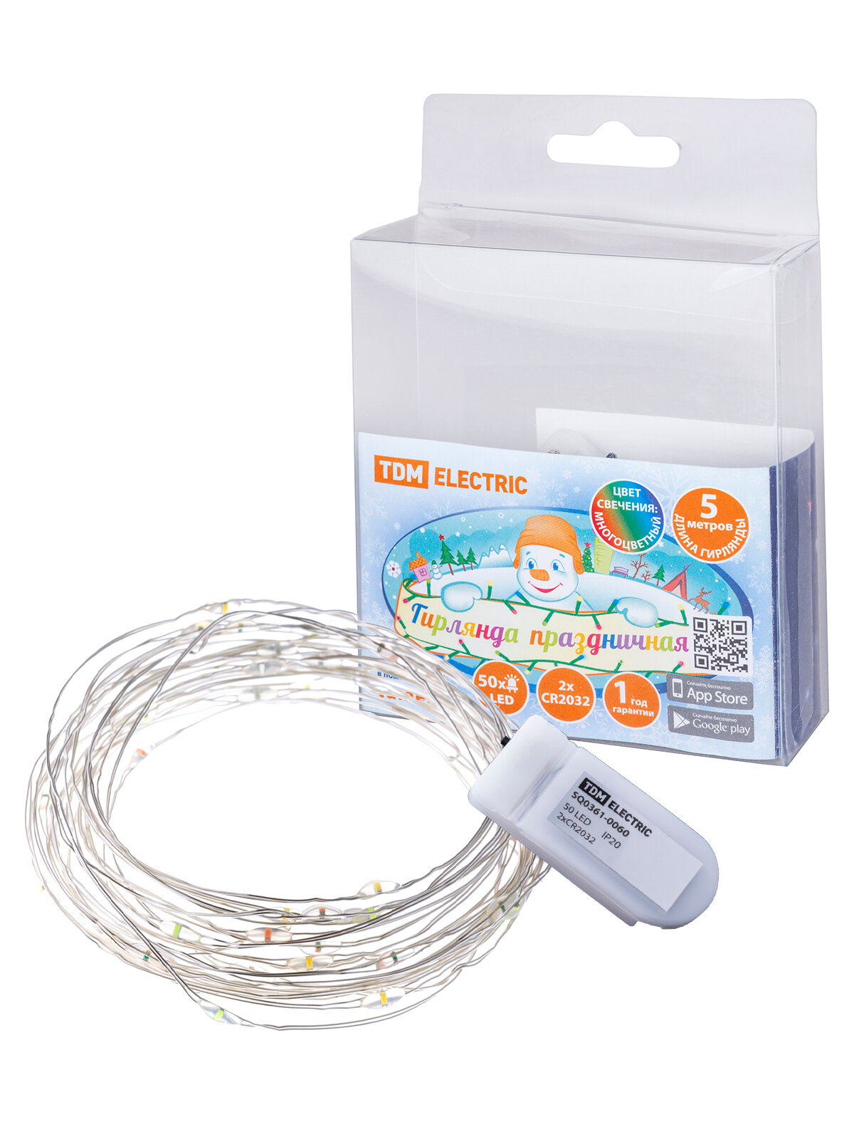Гирлянда светодиодная "Роса50" 50LED, 5м, многоцветная, 2хCR2032 , TDM