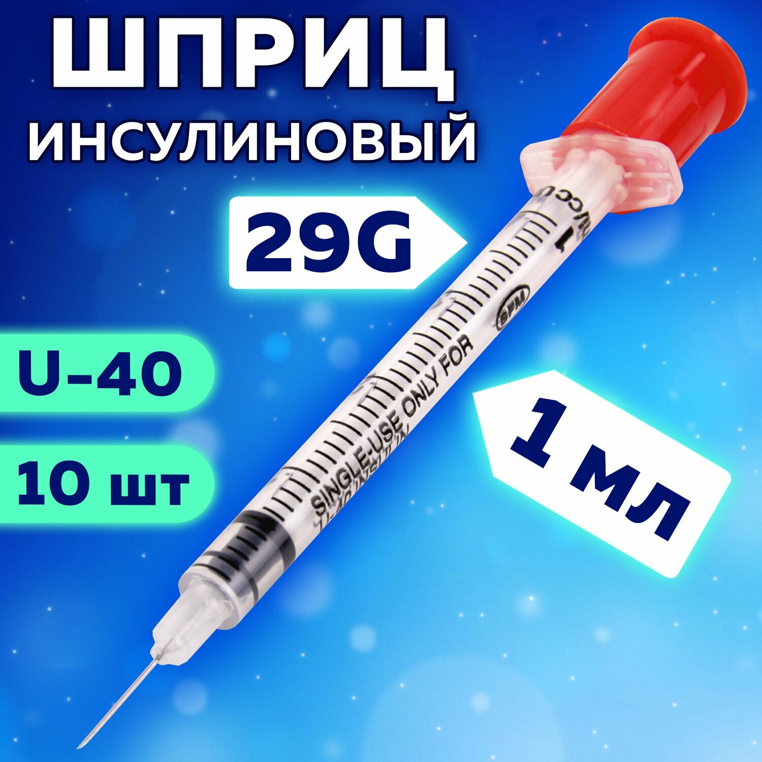 Шприц инсулиновый с иглой 1мл U-40 (3-х комп.) (0,33 х 12,7мм) G29 №10