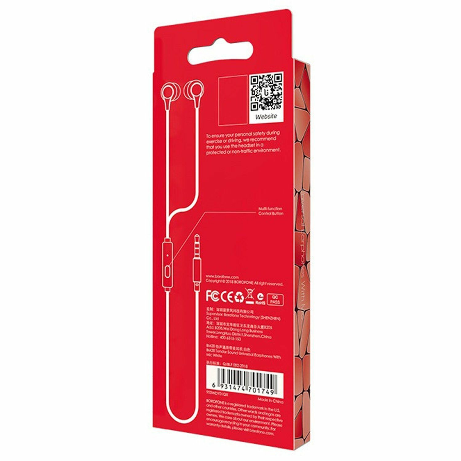 Гарнитура внутриканальная Borofone BM28 Tender sound universal earphones with mic, white