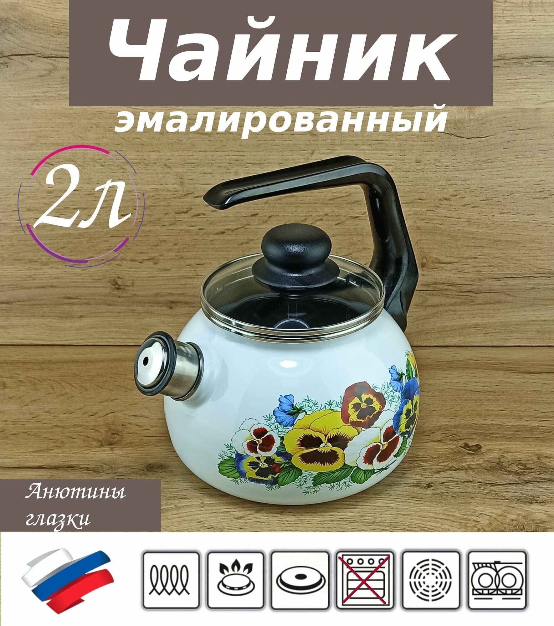 Купить Чайник 2 л эмалированный со свистком, Анютины глазки