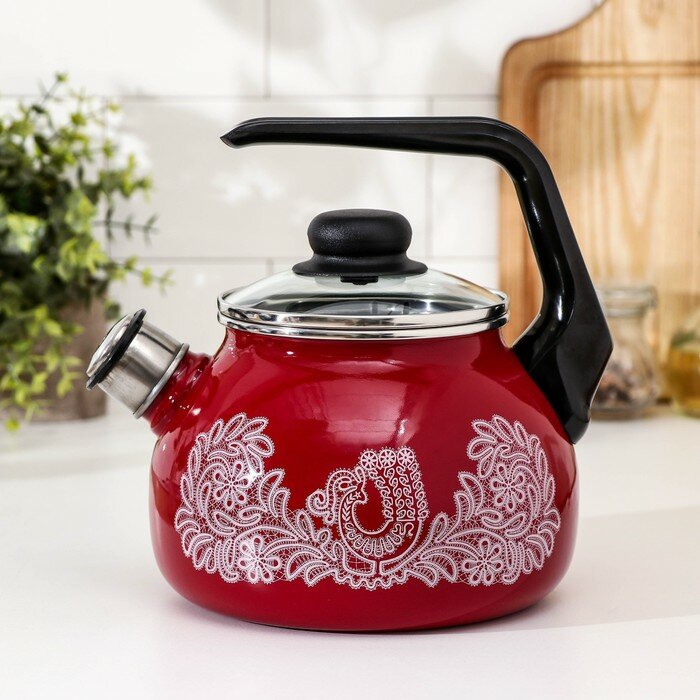 Чайник эмалированный 2 л со свистком, со стеклянной крышкой Армель СтальЭмаль