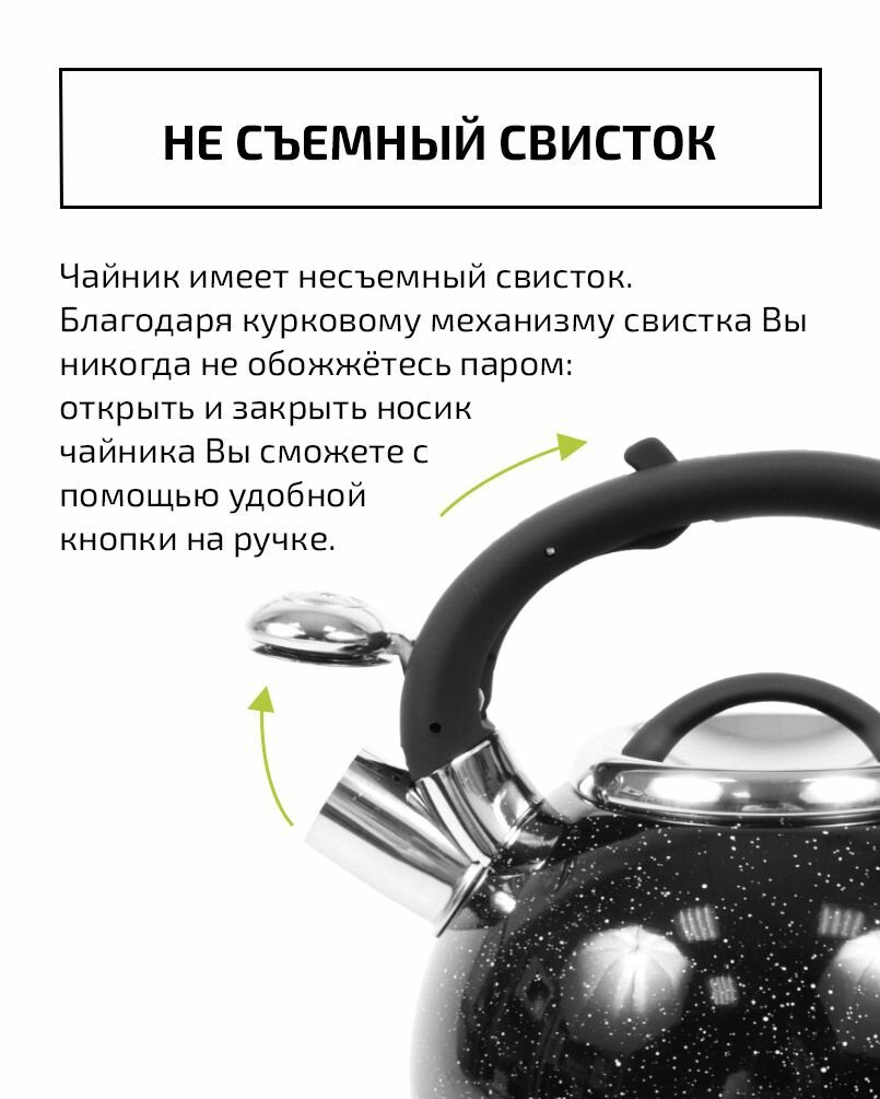 | Минусы: | Свисток СЛИШКОМ громкий. Если вы боитесь уснуть, забыв чайник на плите, то в самый раз. А если вы рядом, то он свистит оглушительно.