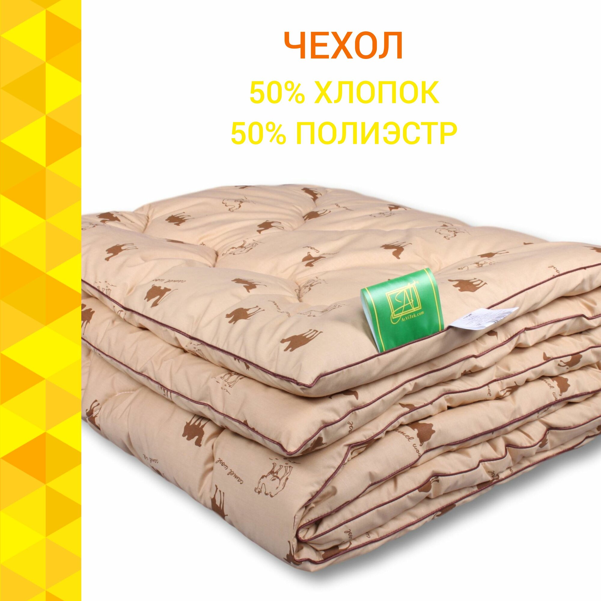 СохранитьОдеяло Альвитек "Sahara Polycotton All Season" 200х220, Евро, Всесезонное, Чехол - поликоттон, 50% хлопок, 50% полиэстр, Наполнитель - верблюжья шерсть, полиэфирное волокно интересное: