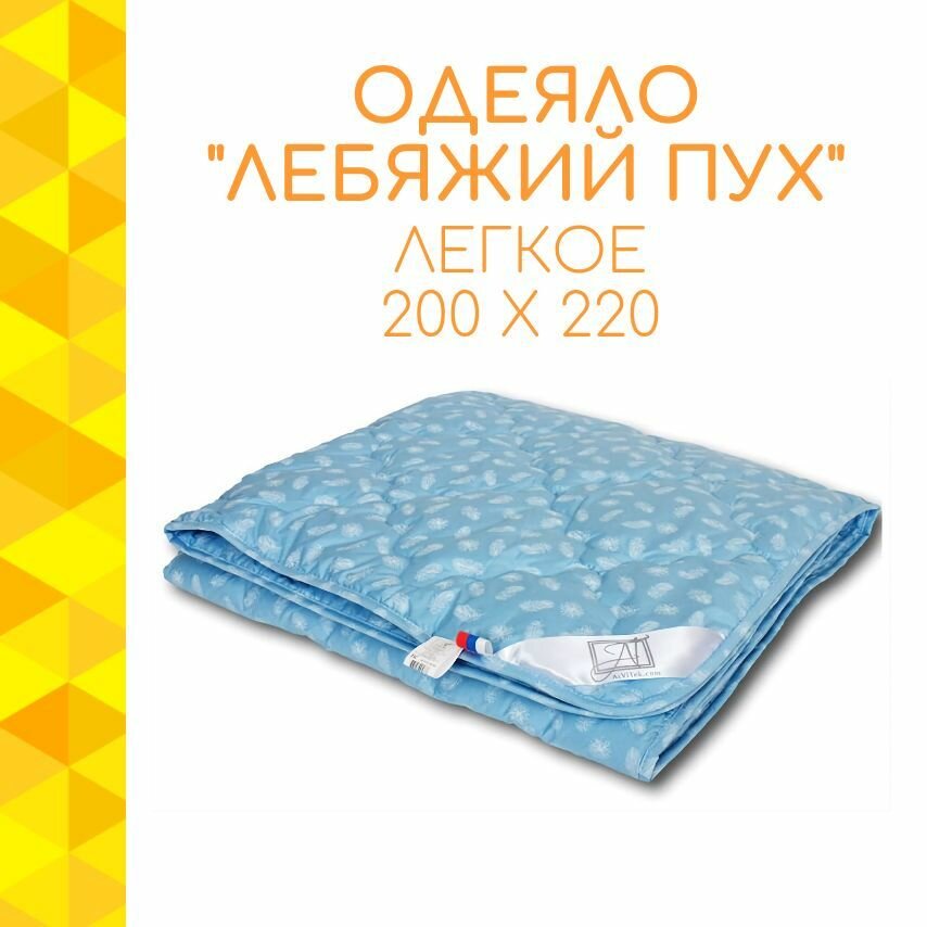 Одеяло Альвитек "Лебяжий пух Light" 172х205, 2х спальное, Лёгкое, чехол - 100% хлопок, тик, наполнитель - искусственный Лебяжий пух