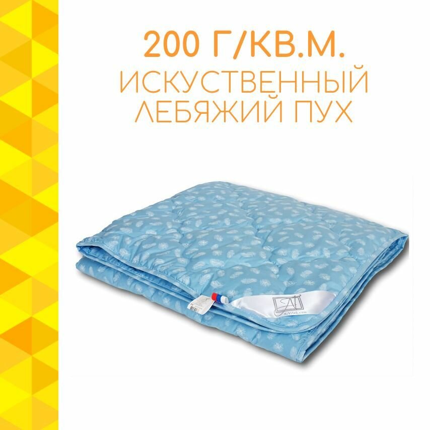 Одеяло Альвитек "Лебяжий пух Light" 140х205, 1,5х спальное, Лёгкое, чехол - 100% хлопок, тик, наполнитель - искусственный Лебяжий пух