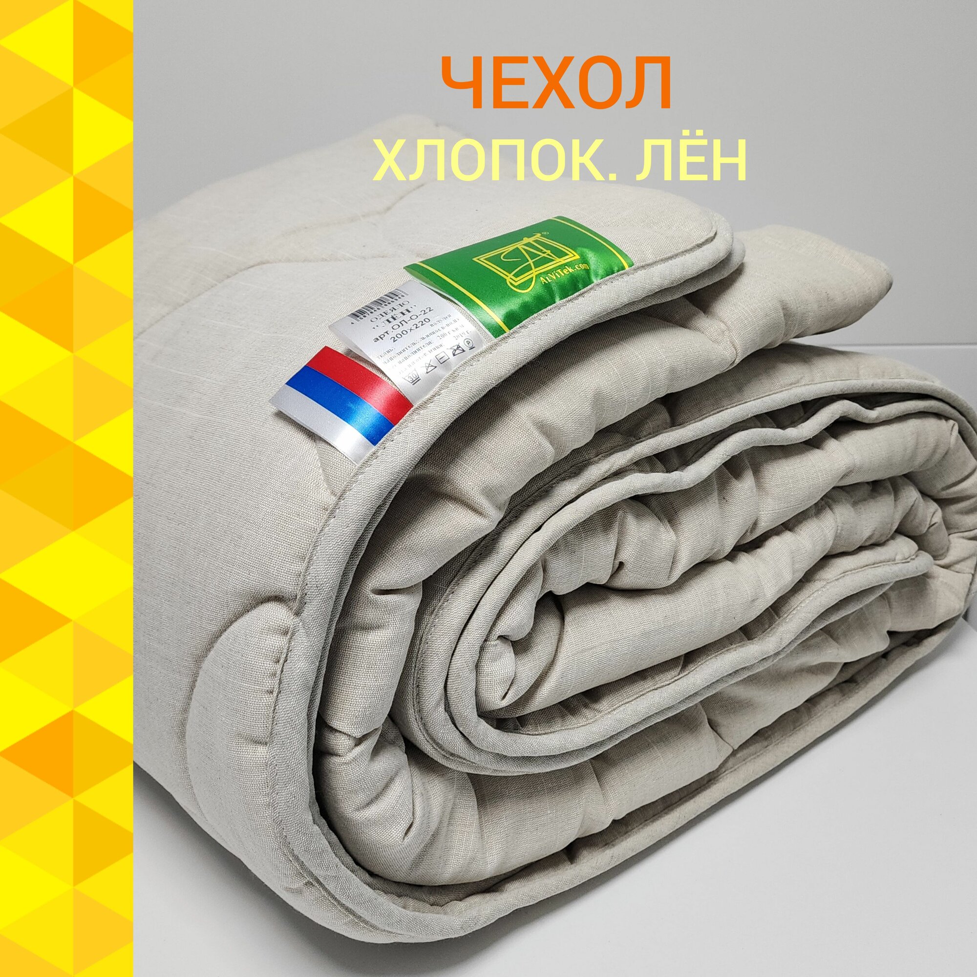 Одеяло Альвитек "Лён Luxe Light" 172х205, 2х спальное, Лёгкое, Чехол - 50% лён 50% хлопок, Наполнитель - лён, полиэфирное волокно