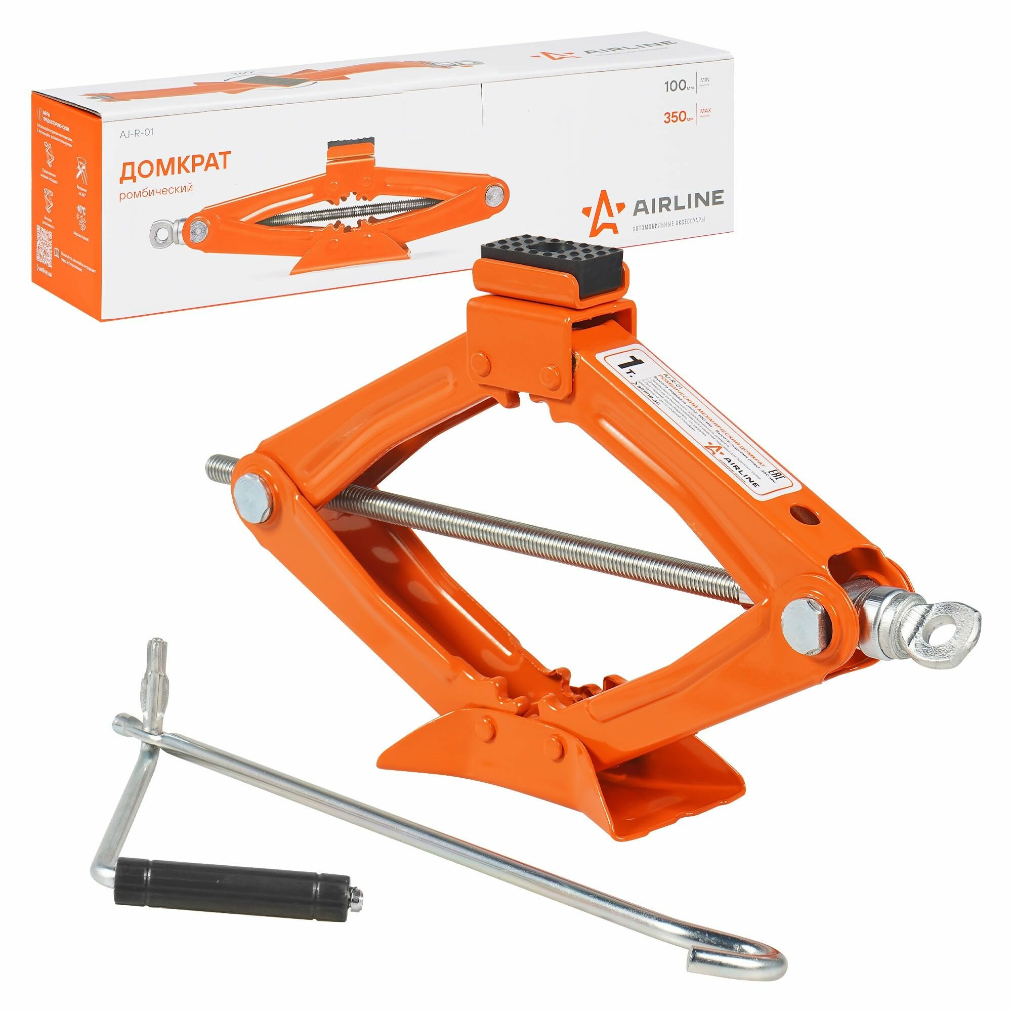 Домкрат ромбический Airline AJR01, 1 т (MIN - 100 мм, MAX - 350 мм)