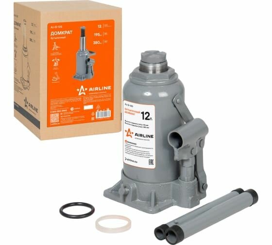 AIRLINE AJ-B-12S Домкрат бутылочный 12т S (MIN - 200 мм, MAX - 385 мм) (AJ-B-12S) 1шт