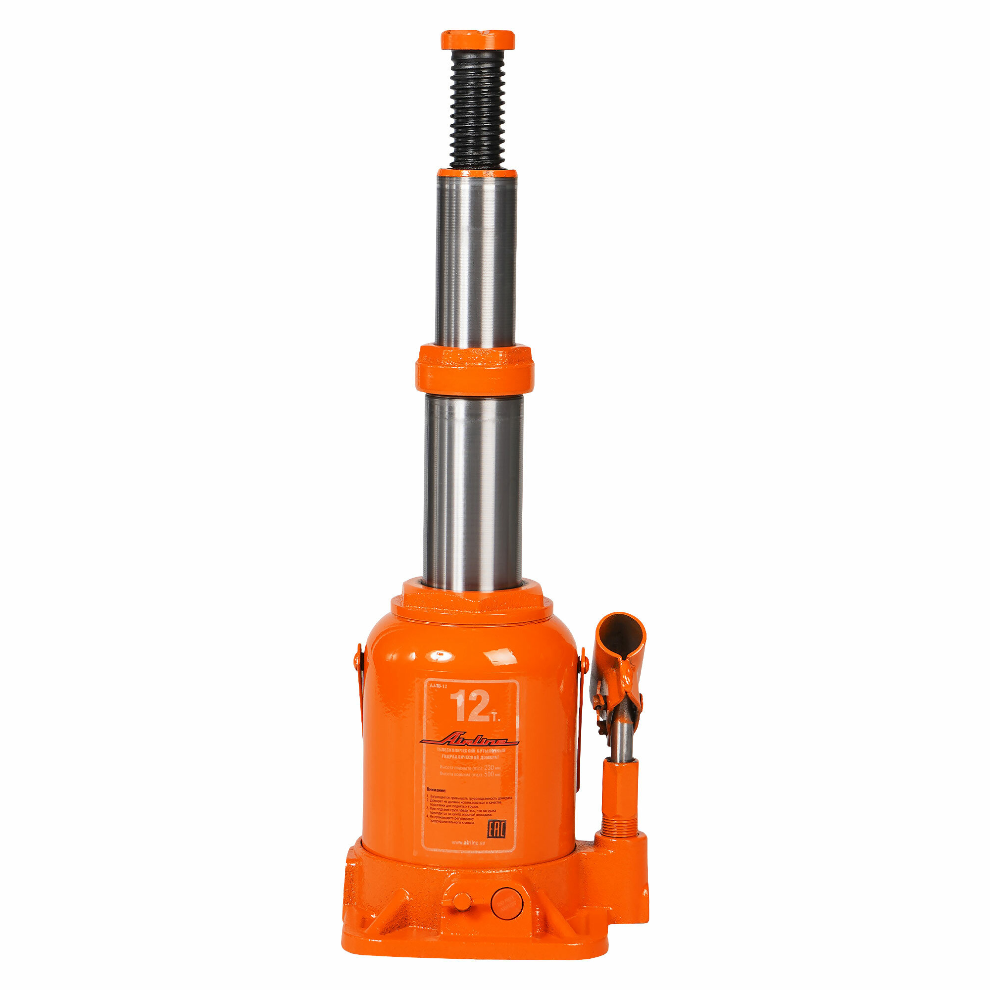 Домкрат бутылочный телескопический Airline гидравлический 12т 230-500мм (ход штока 220 мм) AJ-TB-12