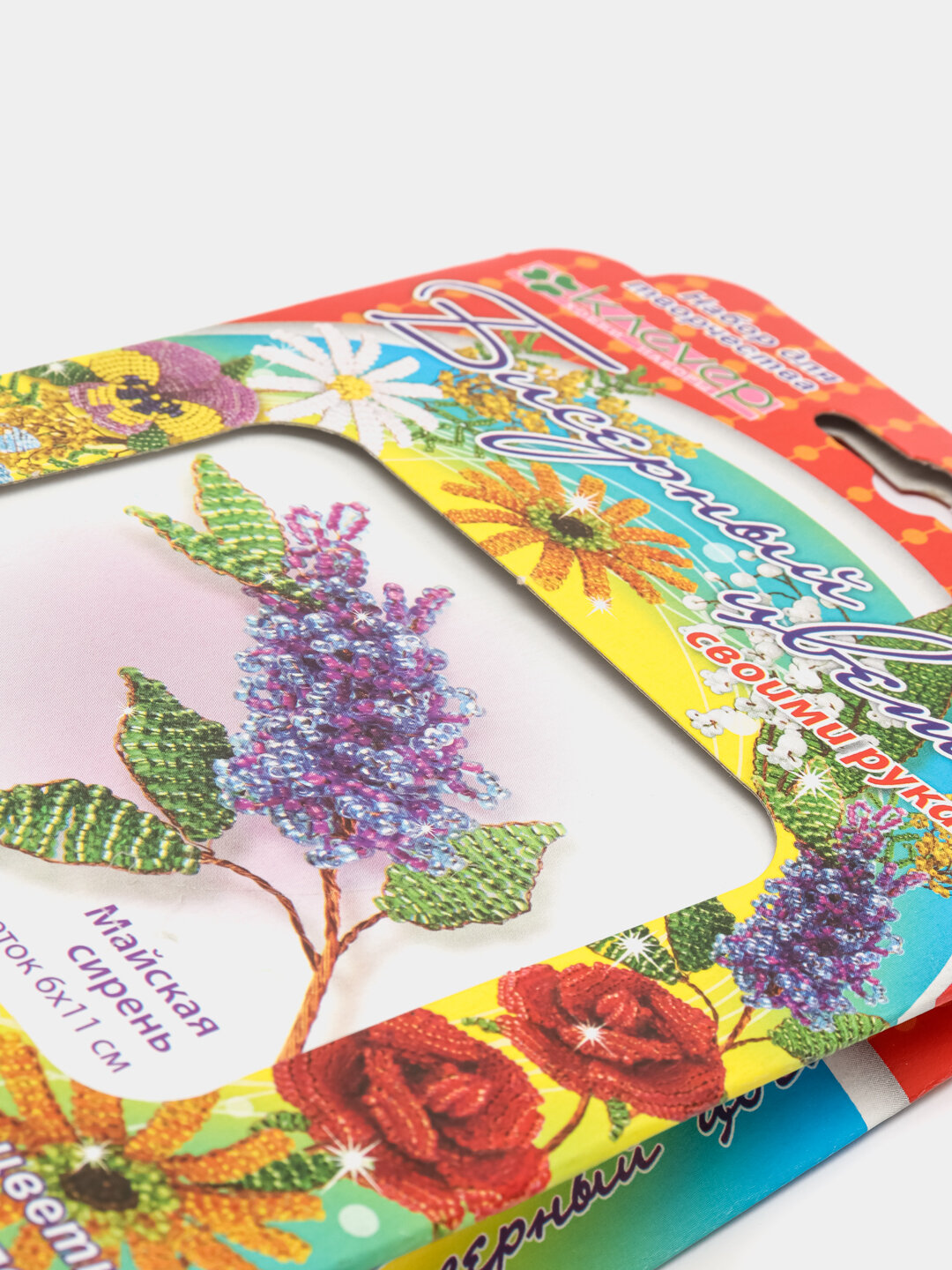 Купить Набор "Майская сирень" (цветок из бисера), в к 3x11x15,5 см