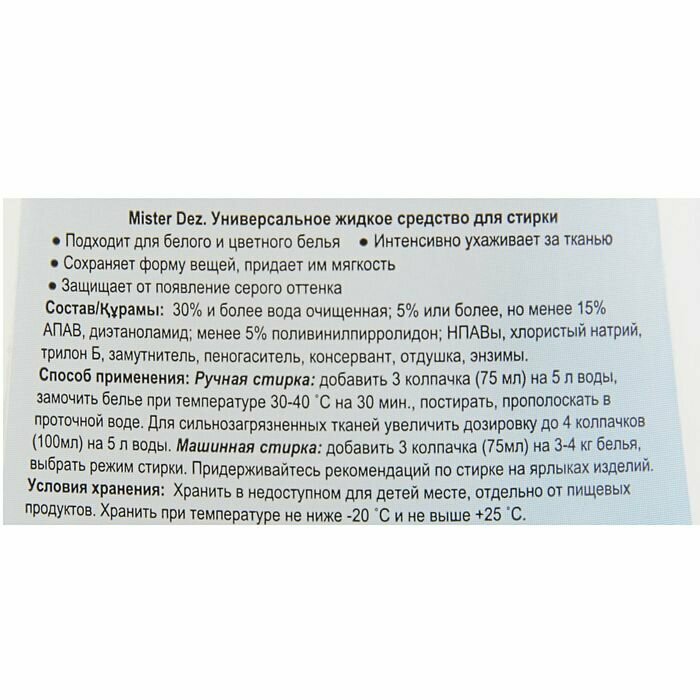 Жидкое средство для стирки Mister Dez 1063 интересное: