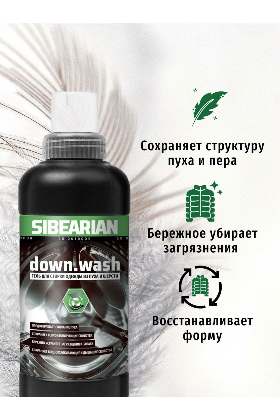 СохранитьГель для стирки пуховиков, курток и одежды из шерсти, подушек, одеял SIBEARIAN DOWN WASH 500 мл интересное: