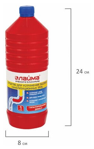Средство для прочистки канализационных труб 1 л трубочист (тип крот), LAIMA PROFESSIONAL, 605377 упаковка 12 шт.
