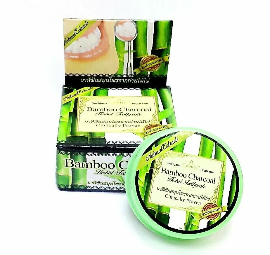 Набор 6 шт: Тайская круглая лечебная зубная паста Банан, Кокосовая, Гвоздика, Мангустин, Папайя, Бамбуковый Уголь от Rochjana / 6 шт по 30 гр