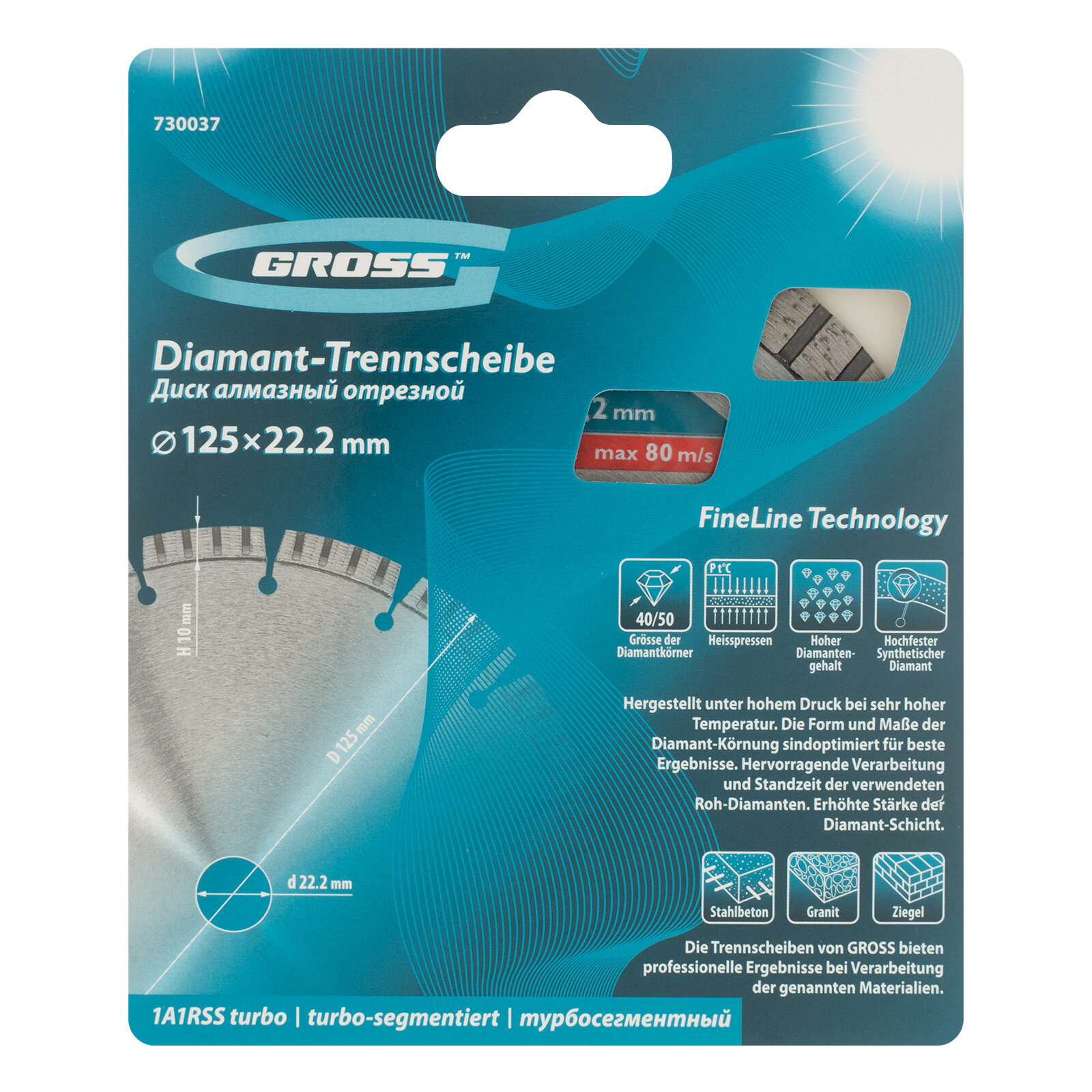 Диск алмазный отрезной Gross 730037, 125 мм 1