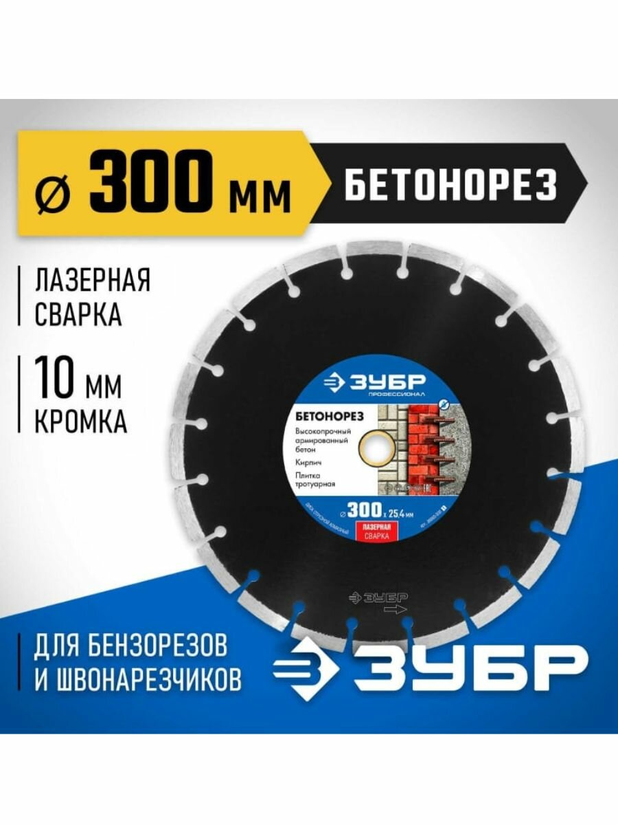 ЗУБР Ø 300х25.4 мм, алмазный, сегментный, диск отрезной для швонарезчиков и бензорезов бетонорез 36665-300_z01 Профессионал
