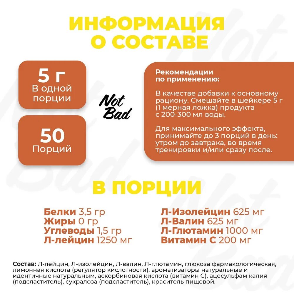 NotBad Plus BCAA 250 gr, 50 порции(й), мириндиа