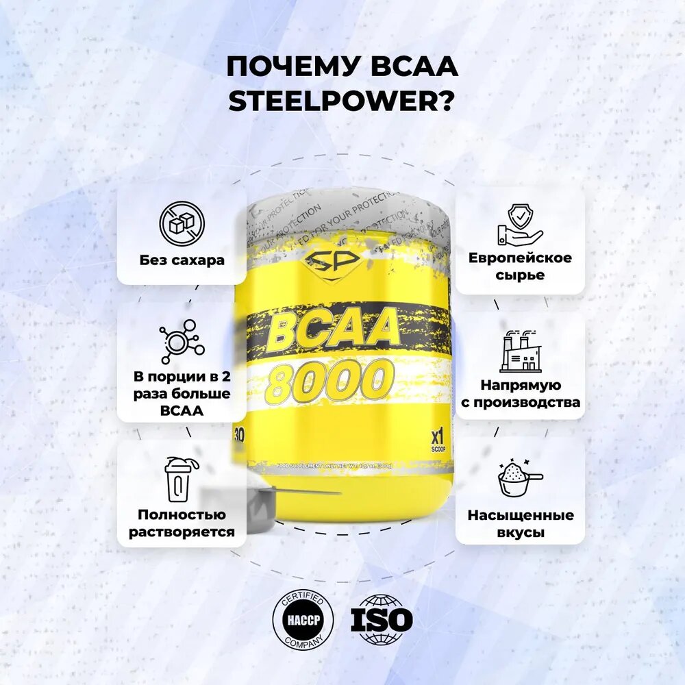 Купить STEEL POWER BCAA 8000 30 порц (300 г) (Энергетик)