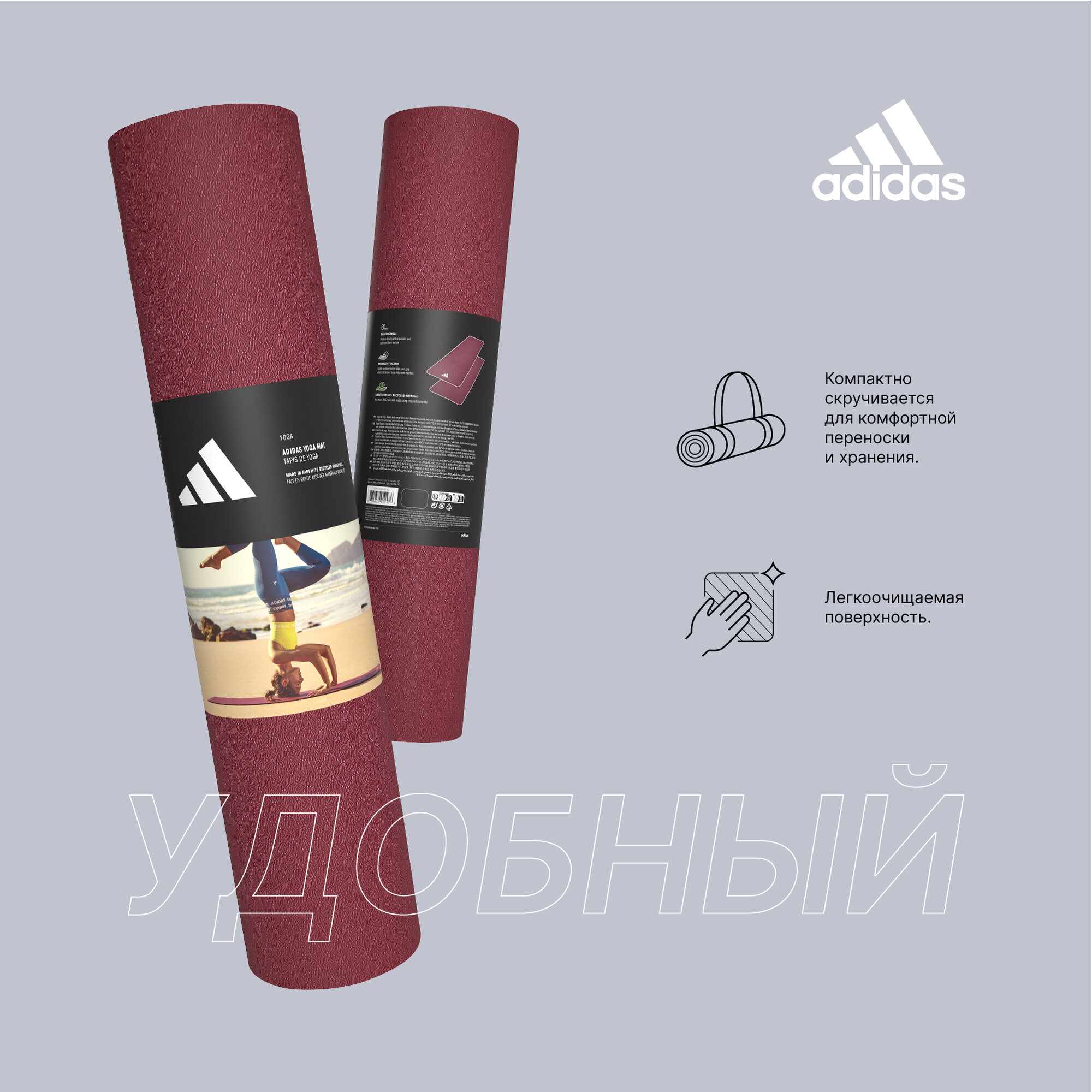 СохранитьТренировочный коврик (мат) для йоги Adidas загадочно-красный (Каучук, Adidas, 8 мм, 610, 80, 80, Загадочно-красный) интересное: