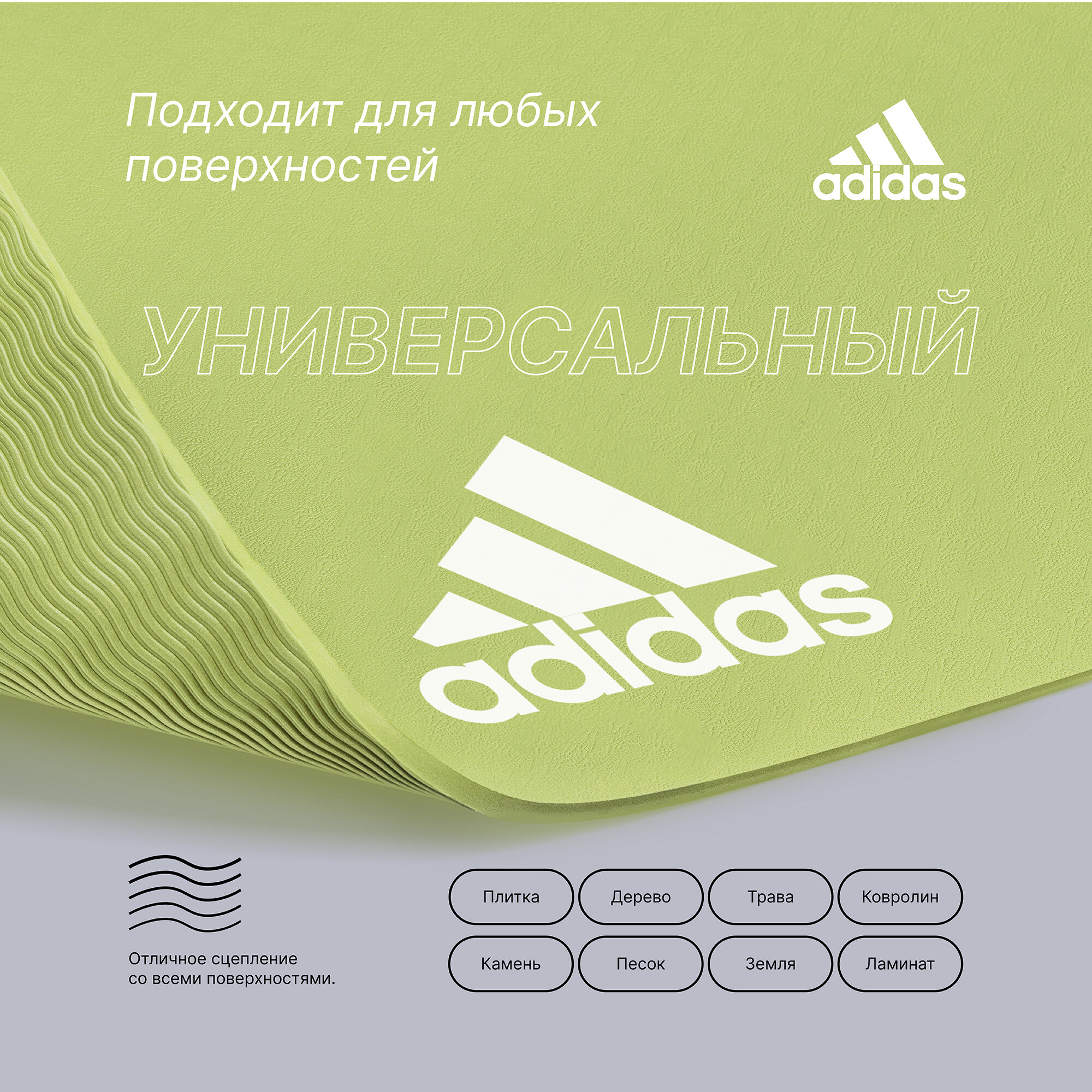 Коврик (мат) для йоги ADYG-10100GN Adidas, цвет Зеленый