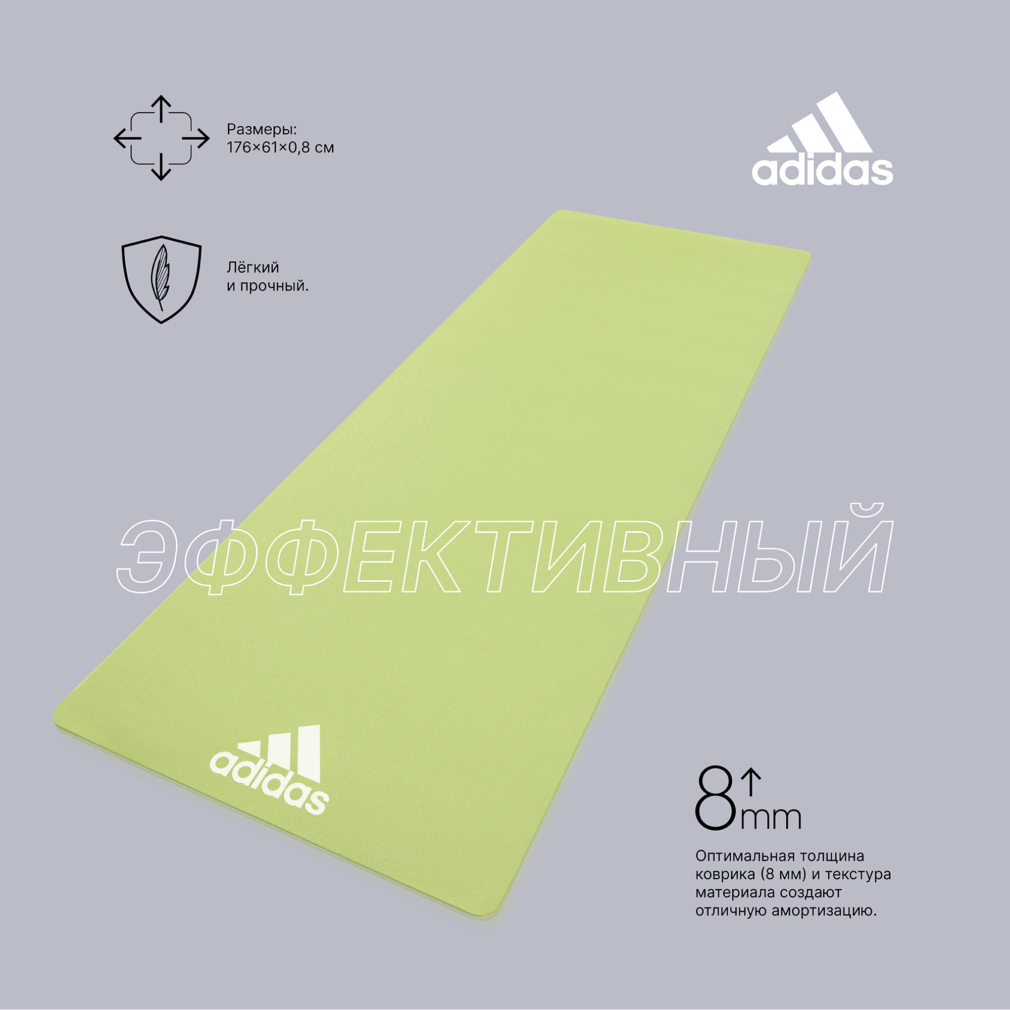 ADYG-10100RG Коврик (мат) для йоги Adidas, цвет Свежий зеленый, Арт. ADYG-10100RG