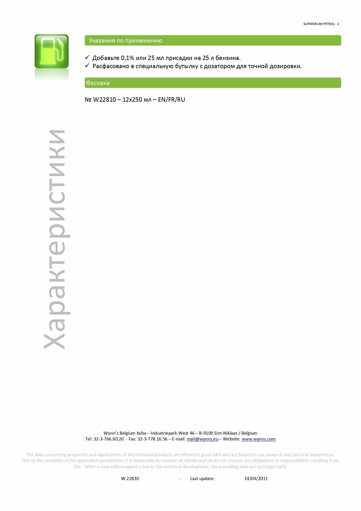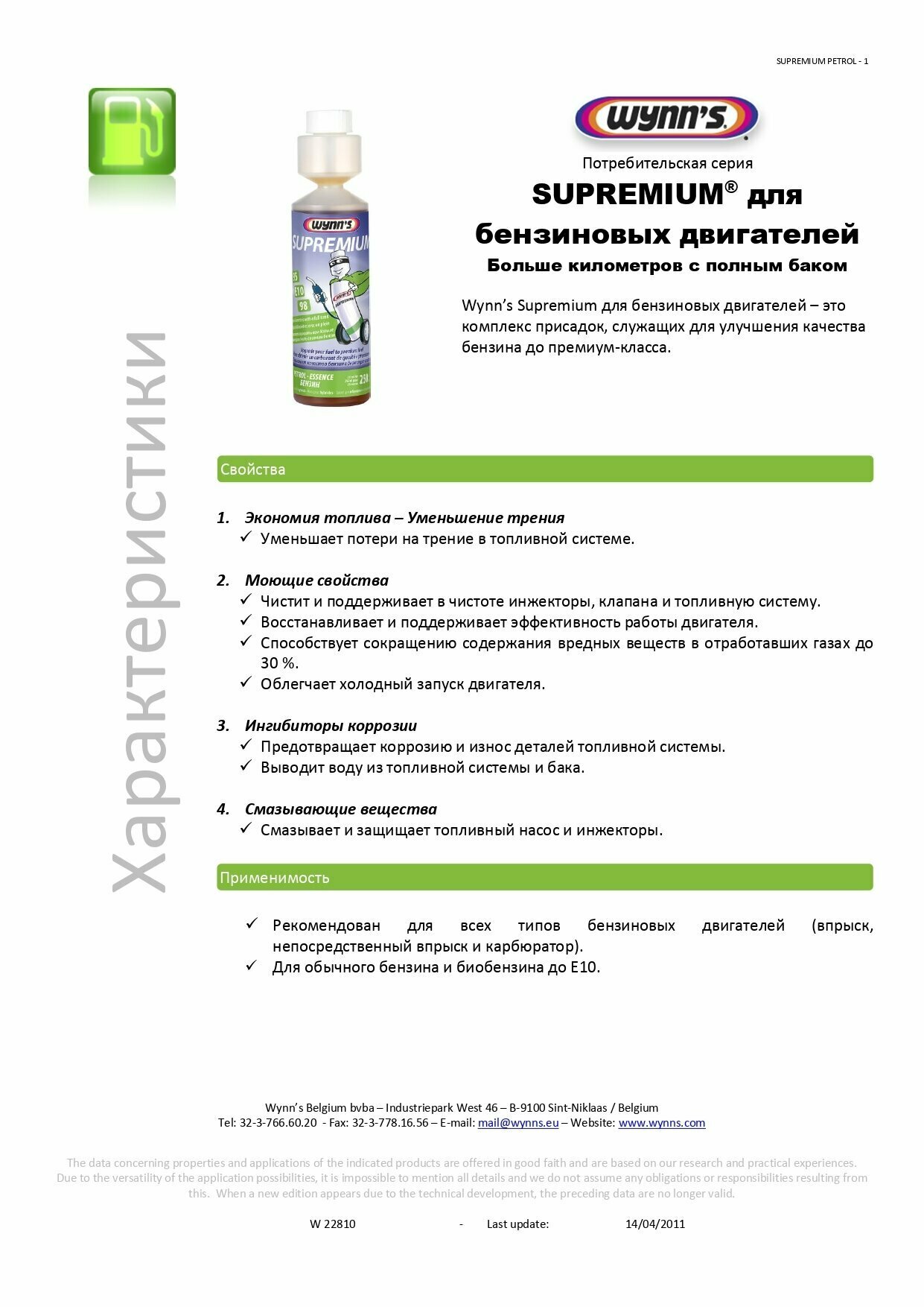 W22810 Supremium Petrol (Присадка В Топливо (Бензин) 250ml Pn22810 Wynn'S Wynns арт. W22810