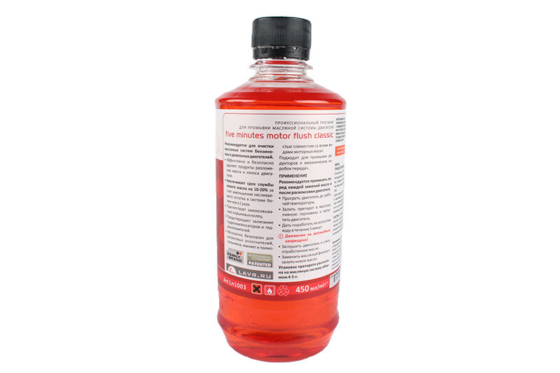 Промывка масляной системы Lavr Five Minutes Motor Flush Classic, для бензиновых и дизельных двигателей, 5-минутная, бутылка 450мл, арт. Ln1003