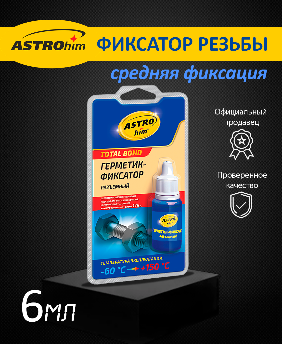 Герметик-фиксатор разъемный, astrohim серия total bond, блистер 6 мл ac-9013