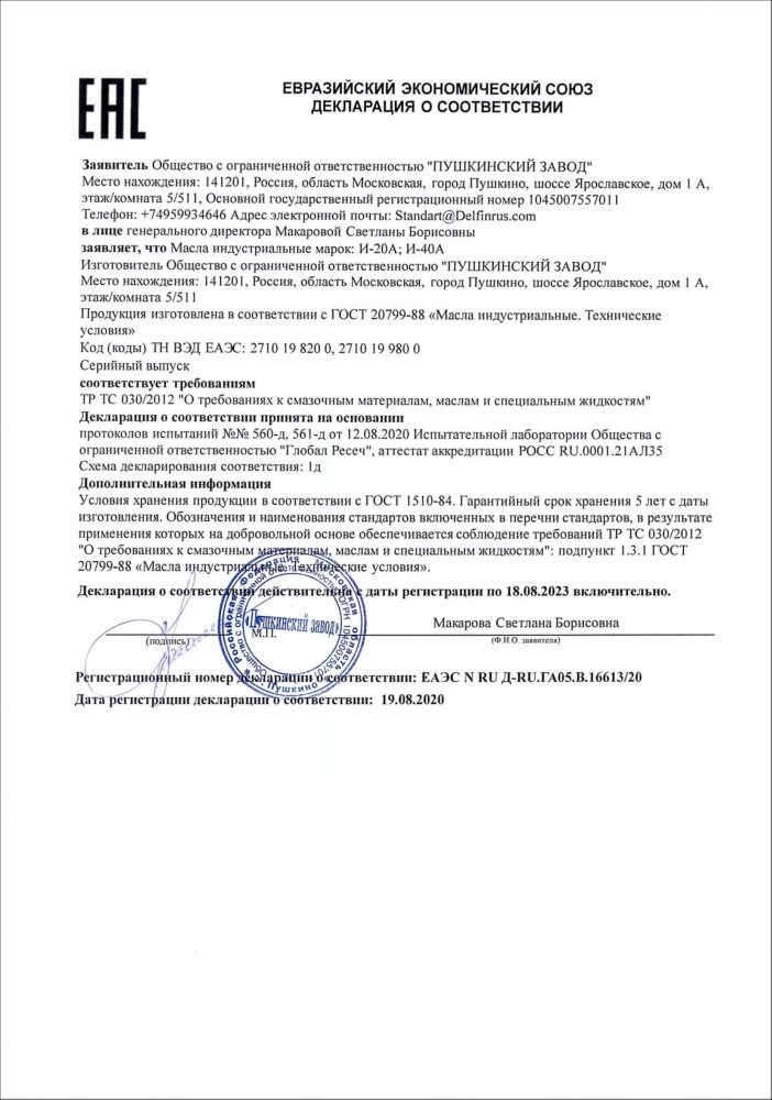 Индустриальное масло OILRIGHT И-20 А 20 л