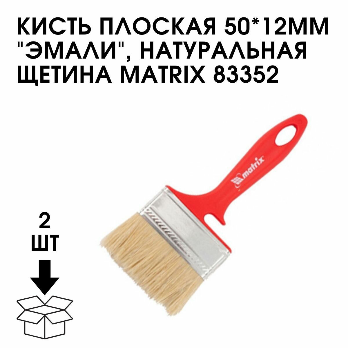 Кисть флейцевая для эмалей, 50 x 12 мм, натуральная щетина, пластиковая рукоятка, Matrix 83352