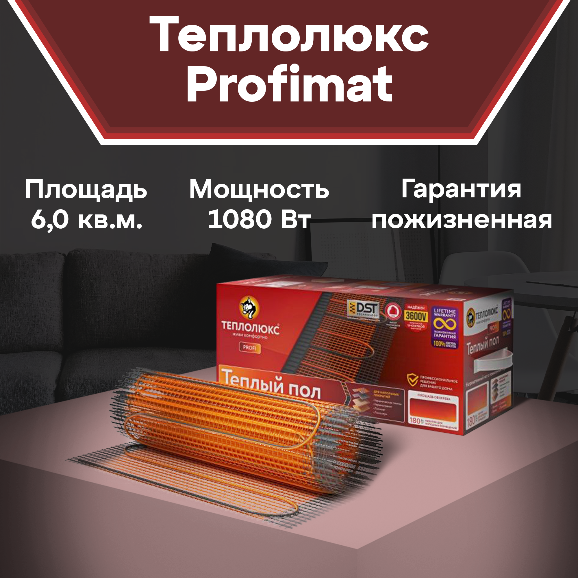Комплект теплого пола Теплолюкс ProfiMat 1080-6,0