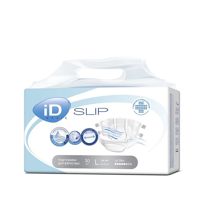 Подгузники для взрослых iD SLIP BASIC, размер L, 30 шт, обхват талии 100-160 см, для средней степени недержания