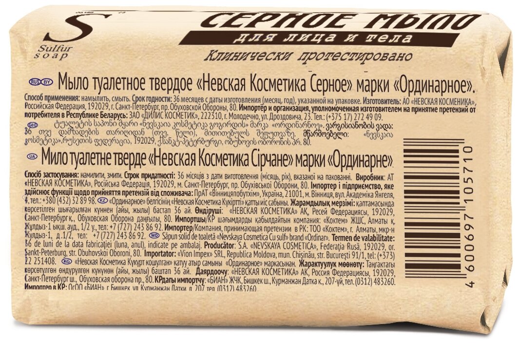 Мыло Невская косметика Серное, для лица и тела, 90 г интересное:
