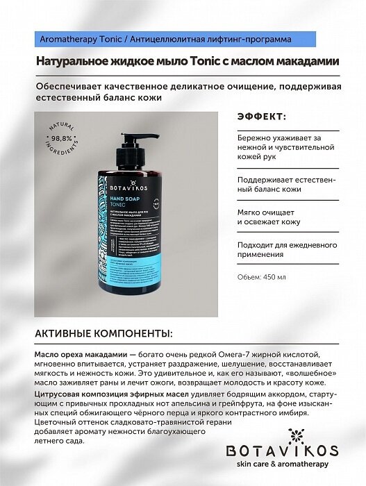 Botavikos Жидкое мыло для рук Tonic натуральное с маслом макадамии, 450 мл 1 шт